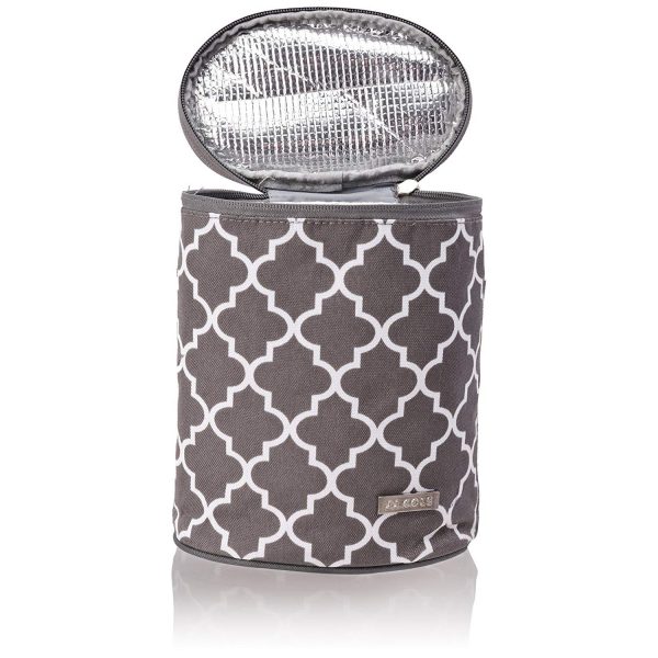 La borsa isotermica per bottiglie è utile, pratica ed elegante! Dotata di un ice pack rimovibile che, una volta raffreddato e inserito nella tasca interna della borsa, mantiene la temperatura desiderata per diverse ore. La borsa isotermica può contenere comodamente due bottiglie da mezzolitro o due biberon ed è dotata di una pratica tasca esterna. Può essere comodamente agganciata ovunque grazie al manico con bottone a pressione.