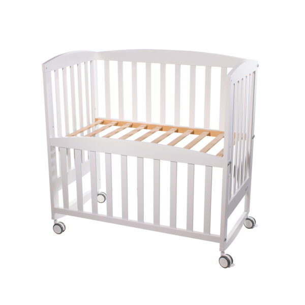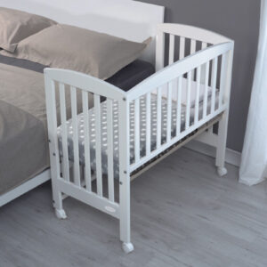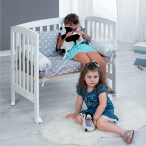 La culla Nami co-sleeping firmata Baby’s Clan con le sue linee semplici e il suo design pulito è ideale per i primi mesi, quando mamma e bimbo hanno necessità di dormire vicino. Si aggancia facilmente a tutti i letti matrimoniali mediante le apposite cinghie in dotazione, ma può essere usata anche in modalità classica: basta tirare su la sponda laterale! Infine, quando il bimbo sarà più grande, Nami potrà essere utilizzata come simpatico divanetto per la sua cameretta! E’ dotata di 4 ruote piroettanti che ne agevolano lo spostamento. Nami è realizzata in Italia, dipinta a mano con vernici atossiche ed è disponibile solo in bianco.