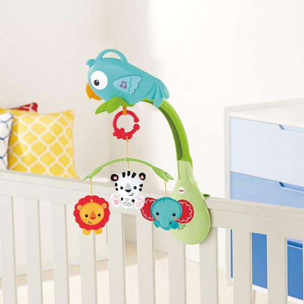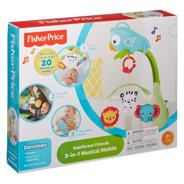 La giostrina Animali della Foresta 3 in 1 con azione motorizzata e quattro teneri amici animali (tre amici della foresta sulla giostrina e un uccellino musicale!) conforta e intrattiene il bambino durante il sonnellino o la nanna con 20 minuti di ninne nanne musicali calmanti. E quando il bambino non userà più il lettino, la giostrina Animali della Foresta si trasforma in un uccellino musicale che il bambino potrà portare sempre con sé oppure in una simpatica giostrina per il passeggino: basterà agganciarla alla capotta! Richiede 3 pile formato stilo AA.