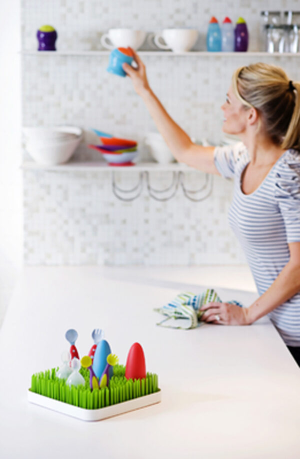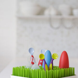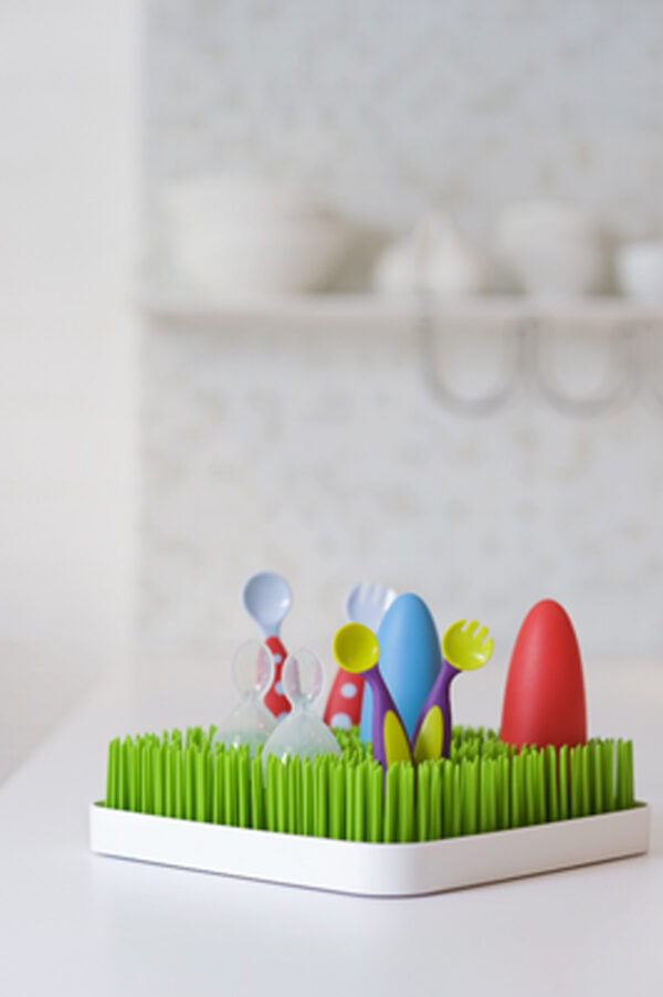 Sembra un piccolo prato casalingo! In realtà Grass è l’utilissimo tappeto scolaposate firmato Boon ideale per far asciugare gli accessori pappa del bambino e particolarmente indicato per i pezzi più piccoli come le parti del biberon e del tiralatte. La parte inferiore è un pratico vassoio che raccoglie l’acqua. Si consiglia di arricchirlo con Stem, Twig o Poke: i pratici supporti a forma di fiore, ramo e cactus che aumentano lo spazio disponibile sul prato e lo rendono ancora più bello e originale: perfetto per donare un tocco di allegria e design alla cucina. Si pulisce facilmente.