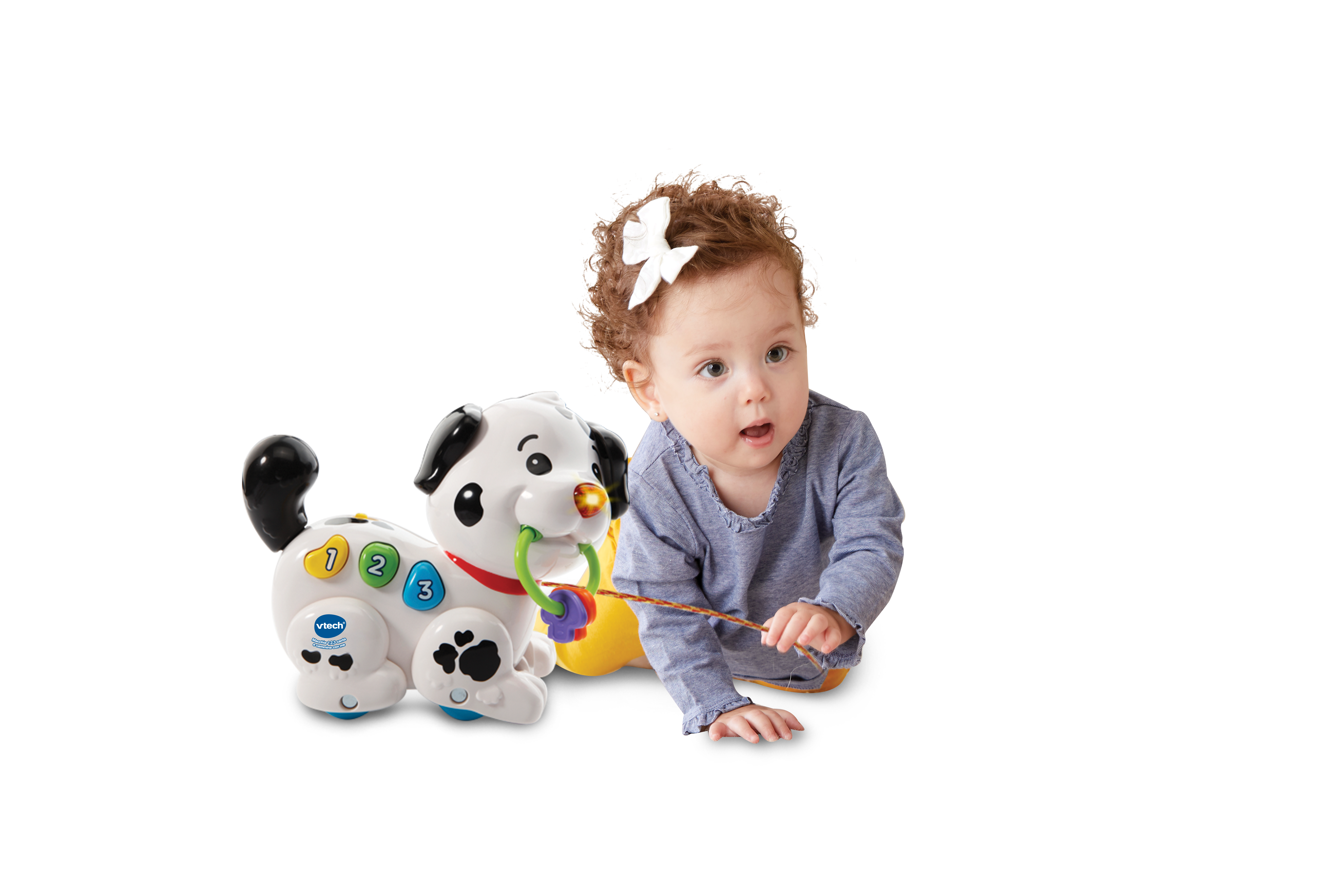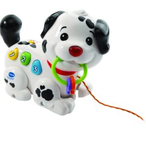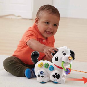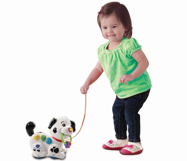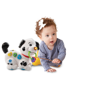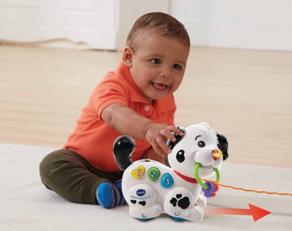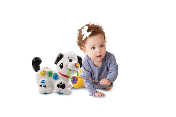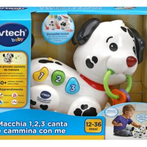 Macchia è un piccolo cane da traino che accompagna il tuo bambino nelle sue scoperte come i numeri, i colori e le parti del corpo, sviluppando anche le sue capacità motorie. Mentre cammina, muove le sue zampe, attivando suoni e melodie divertenti!