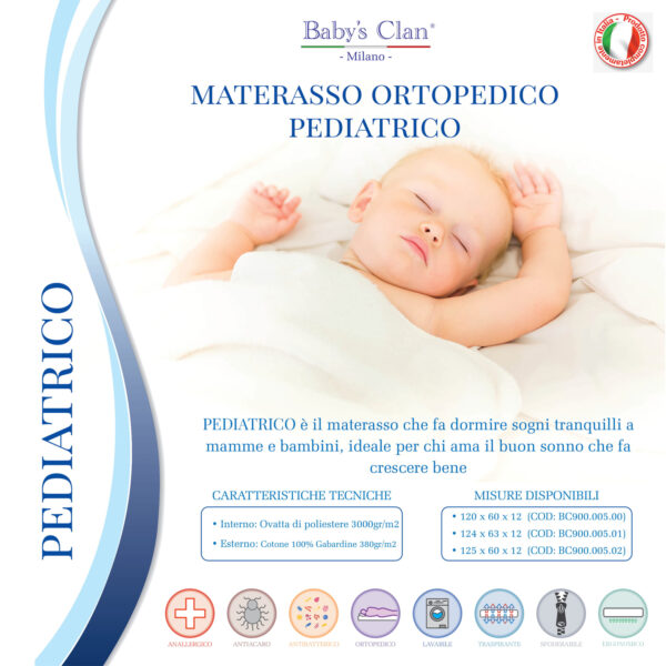 Pediatrico – Materasso lettino in ovatta con rivestimento in cotone trapuntato – Baby’s Clan