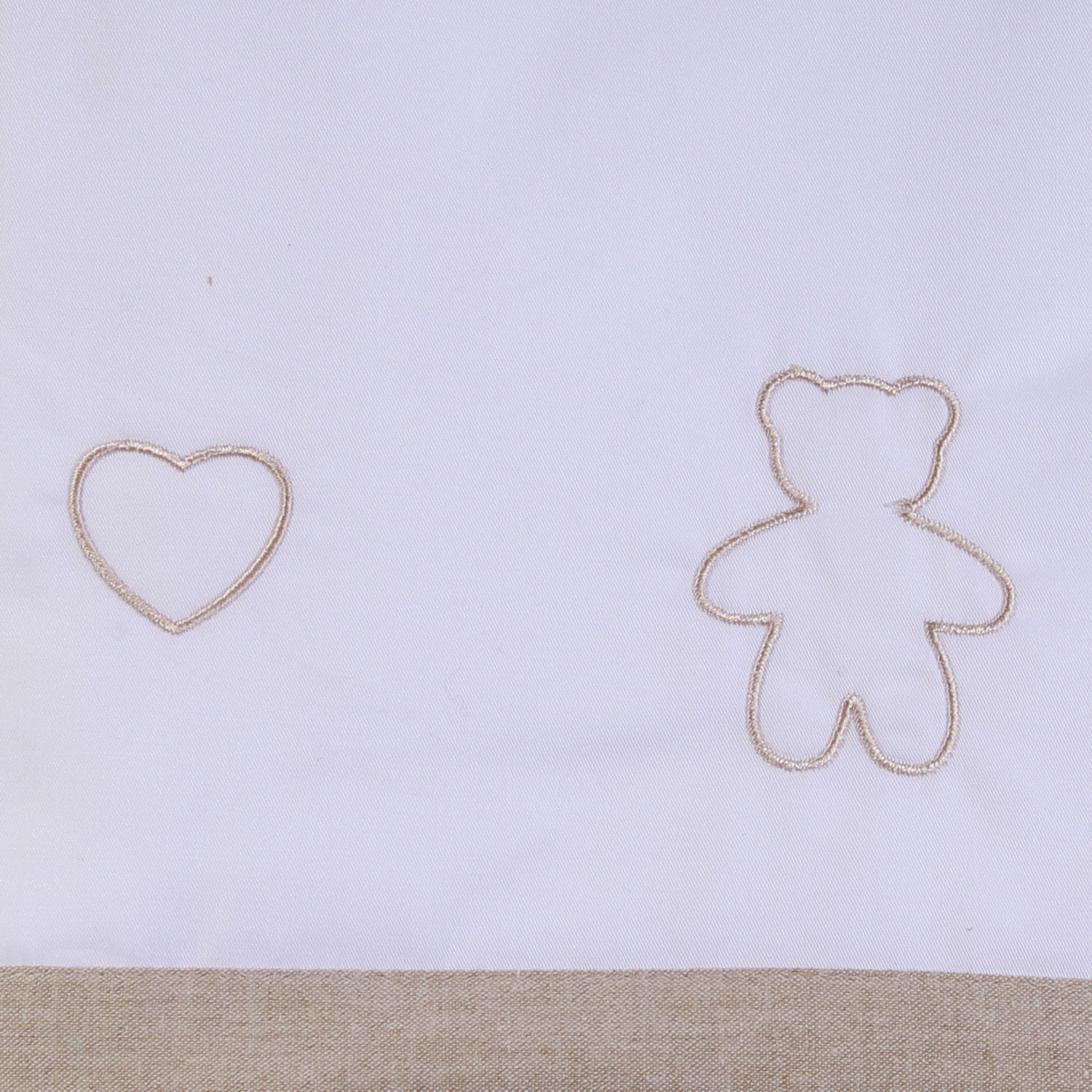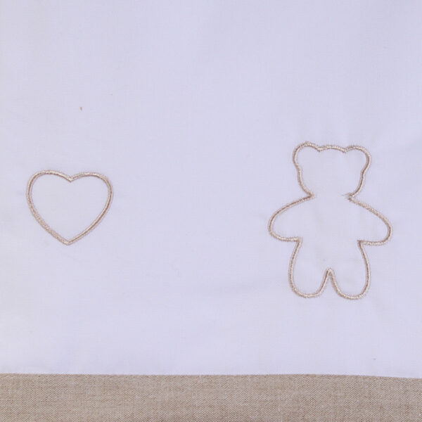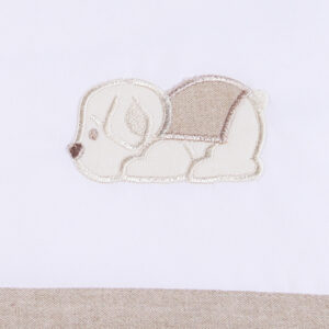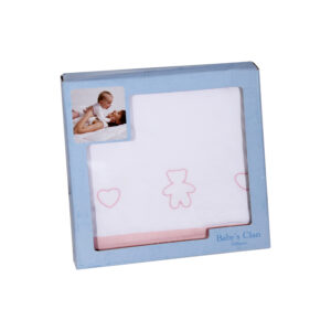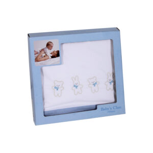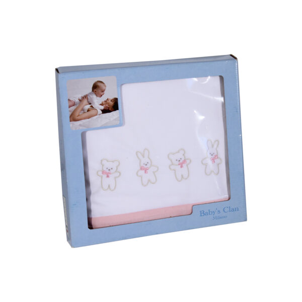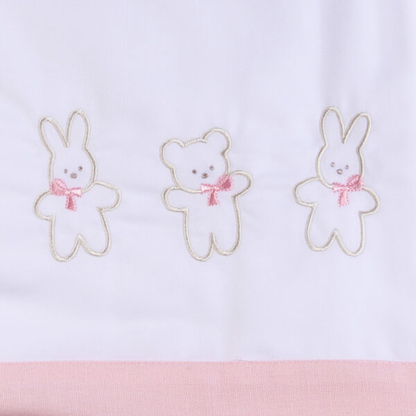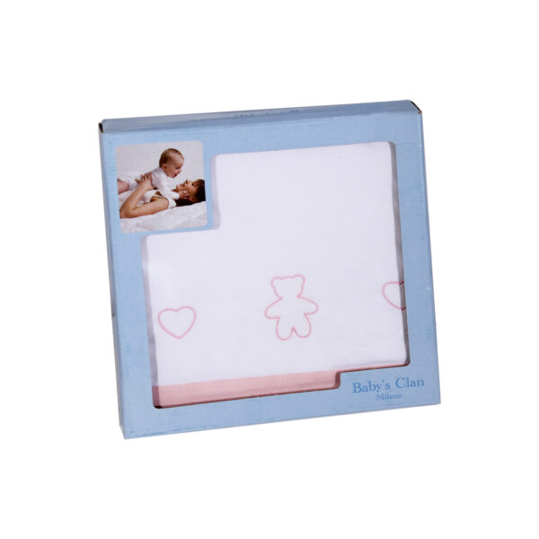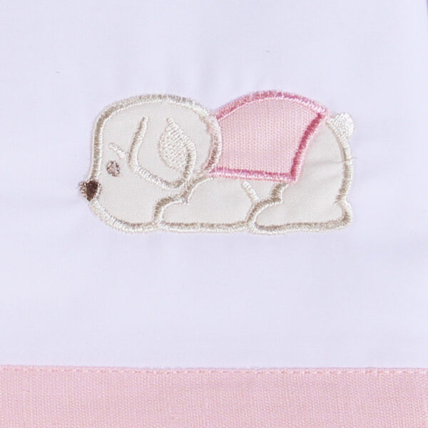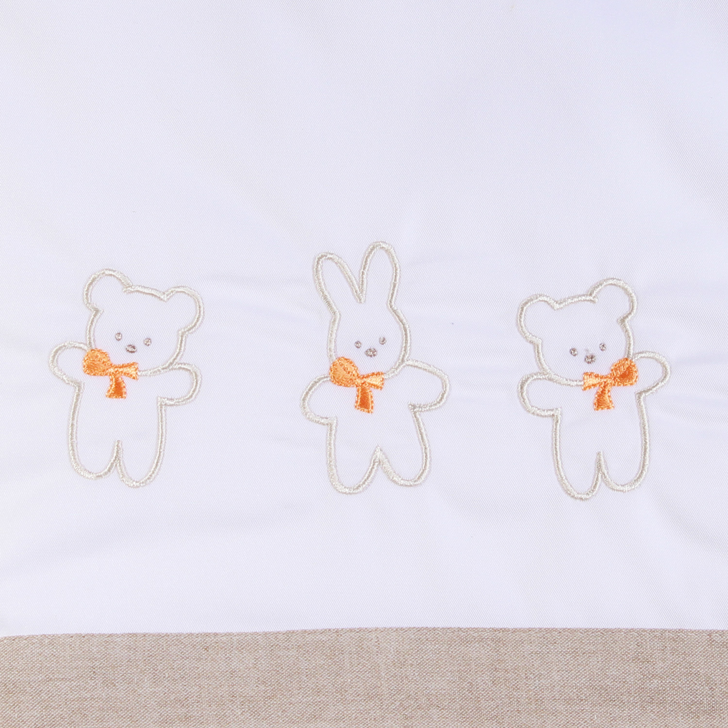 Set lenzuola per lettino composto da 3 pezzi: lenzuolo sotto con angoli elastici, lenzuolo sopra e federa cuscino. Realizzato in cotone egiziano di primissima qualità e 100% Made in Italy. Il set è utilizzabile su materassi 120×60 cm, 124×63 cm e 125×60 cm. Balza impreziosita da bordo colorato e tenero ricamo.