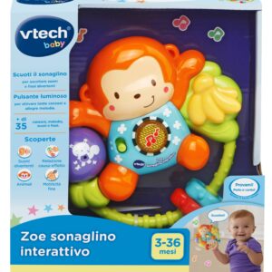 • Un simpaticissimo sonaglino musicale e luminoso! Zoe è una piccola scimmietta che accompagna il tuo bambino con effetti luminosi e suoni divertenti!